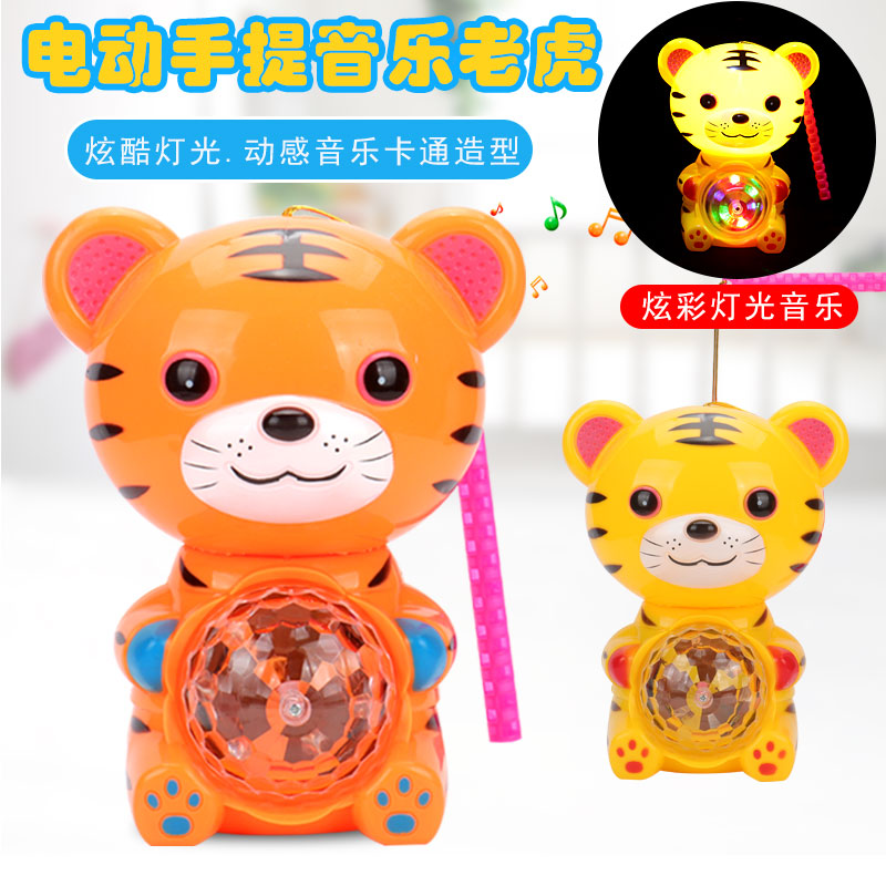 2022 Tiger Year Seven Colorful Tiger Lanterns Children's Toys Shine Music Cartoon Hand Lantern Lantern Festival Flower Lantern Gifts