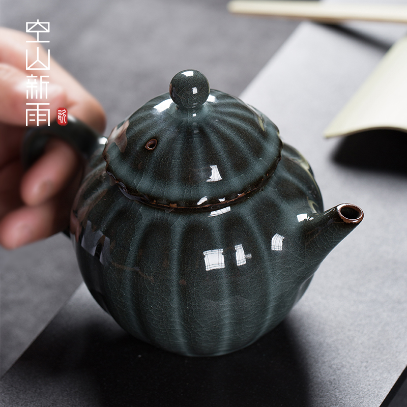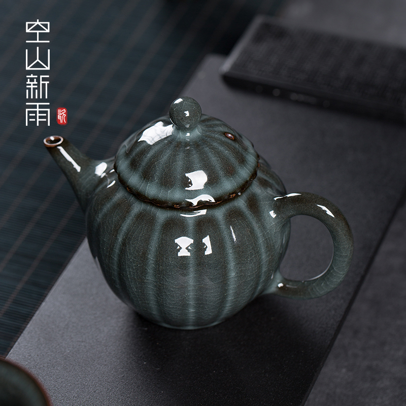 Kongshan Xinyu teapot tea pot handmade ceramic household Longquan celadon iron tire Chinese retro ice cracked kung fu teapot