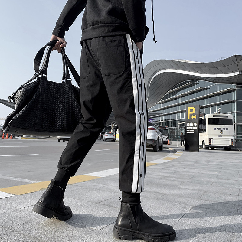 Function black casual pants men's autumn and winter 2020 new Korean version of the trend wild dark Ruffian handsome foot sports pants