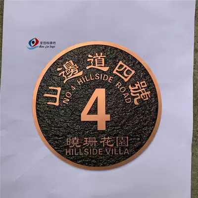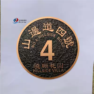 Personality round hollow house number residential high-end residential villa studio logo imitation copper reminder card custom