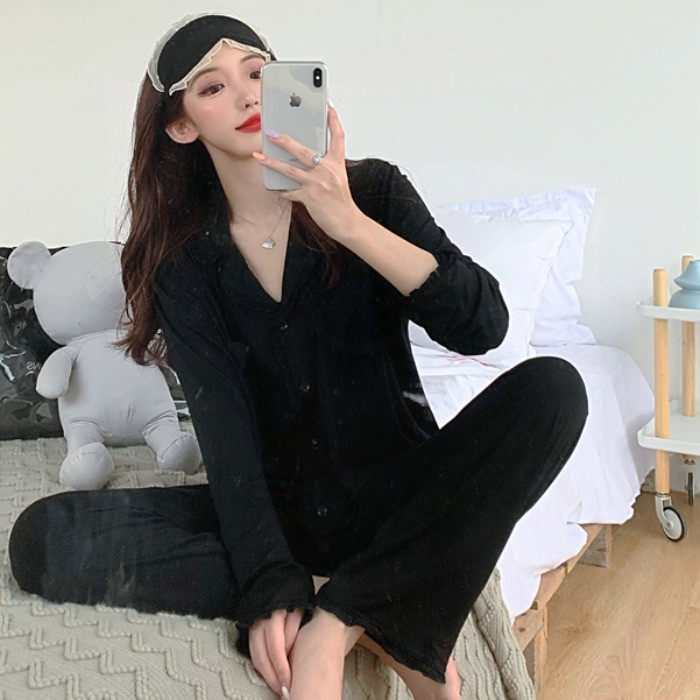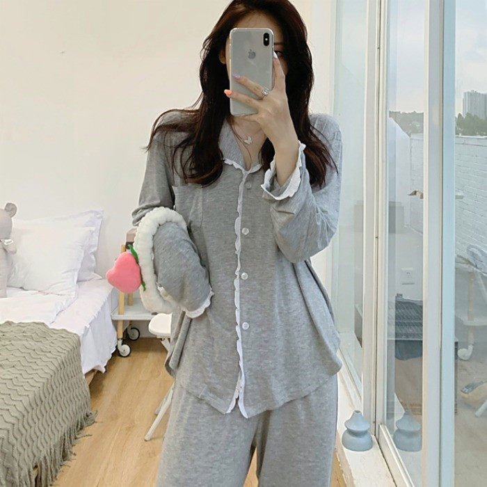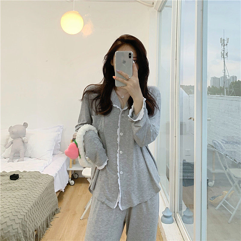 Modal pajamas women's 2022 new cotton long-sleeved autumn and winter ruffled living clothes spring and autumn two-piece suit