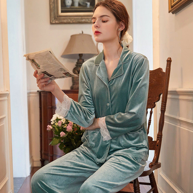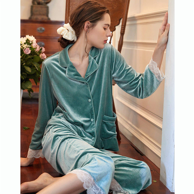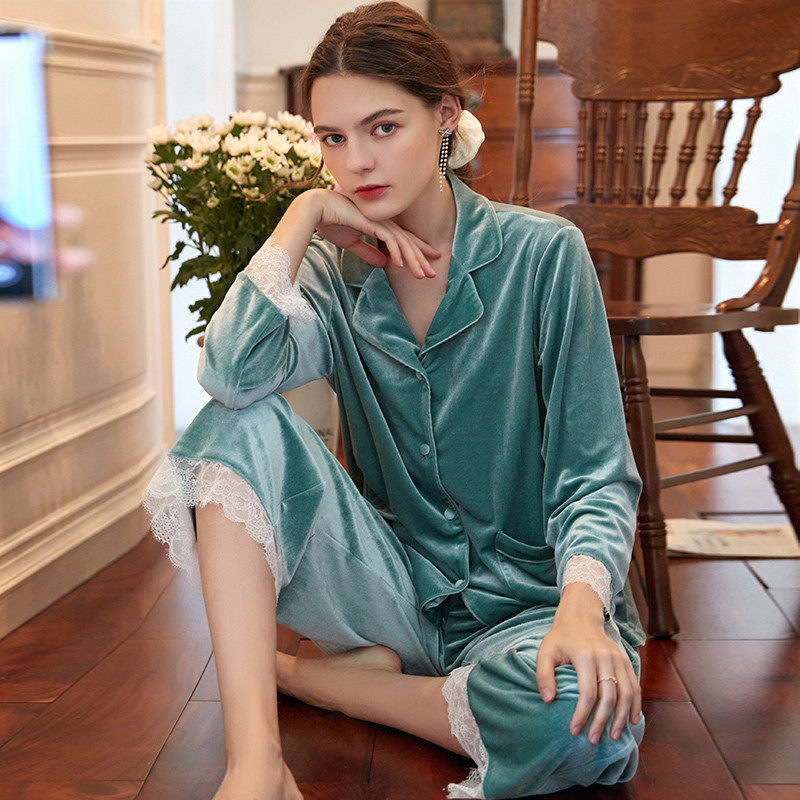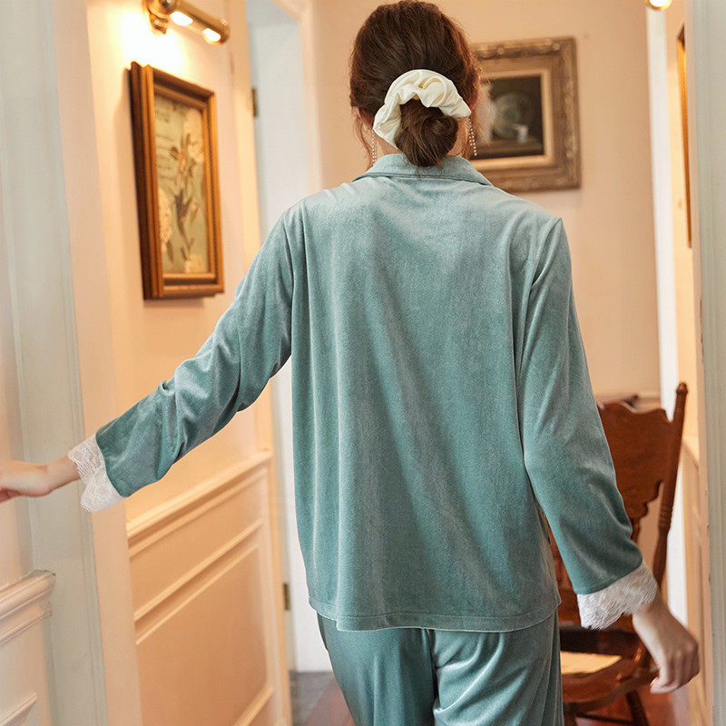Pajamas women's 2022 new gold velvet thin section spring and autumn high-end women's long-sleeved homewear suits can be worn outside