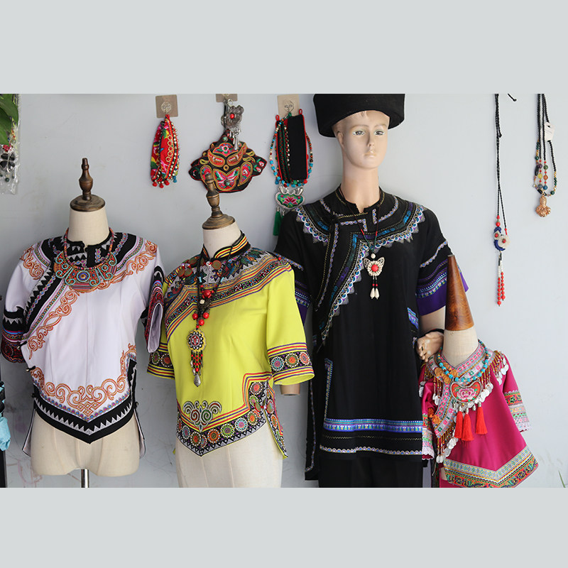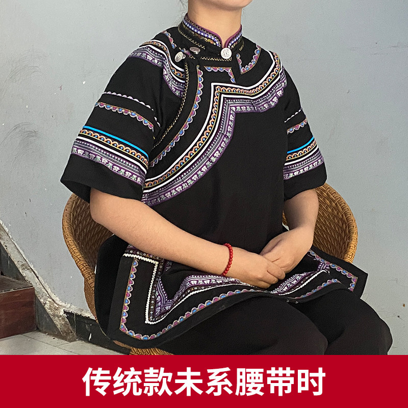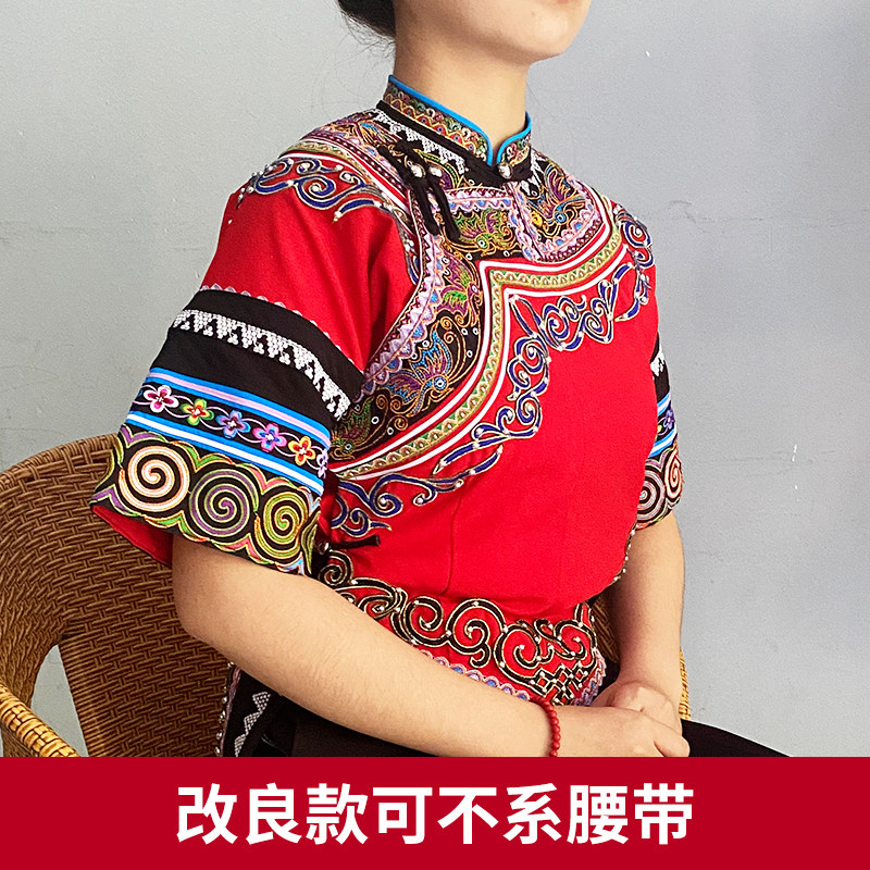 Yunnan Red River Minority Clothing Women Yi Hani Nation Custom Artisanal Embroidery Stage Dress Daily Wedding Celebration