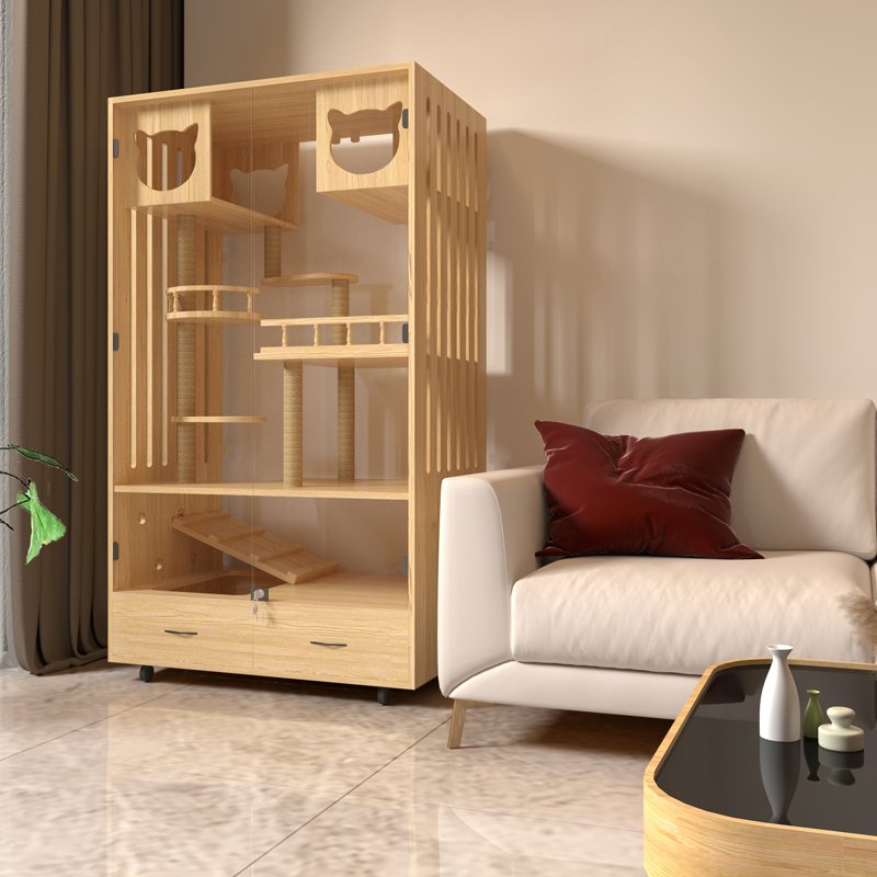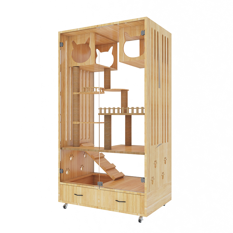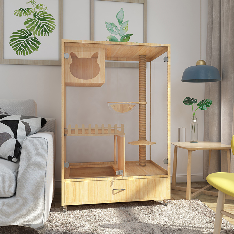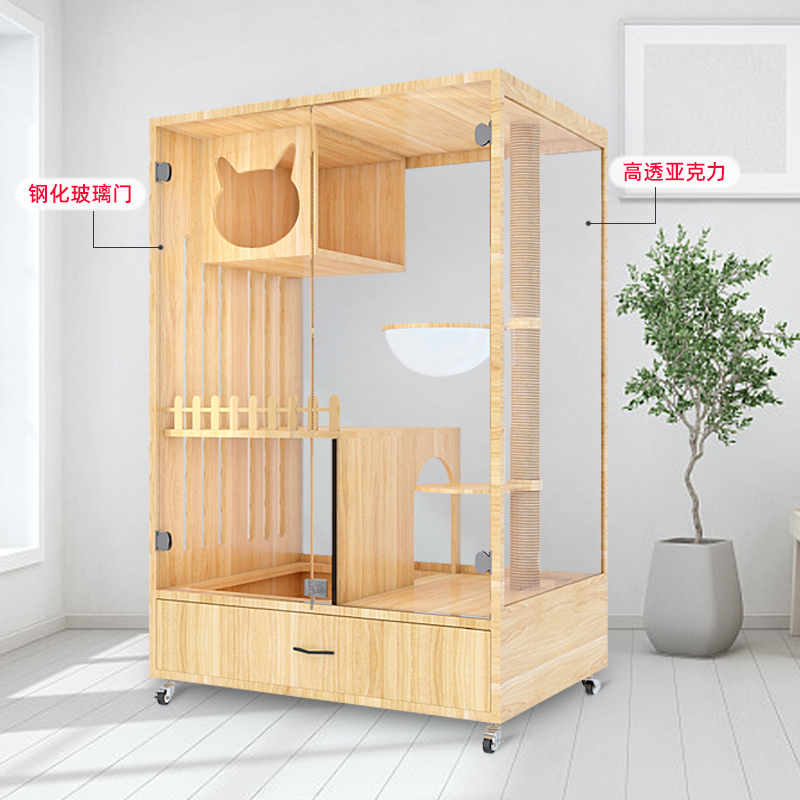 Cat Cage Villa Solid Wood Luxury Home Large Pet Cat Cage Transparent Glass Cat House with Toilet Can Be Customized