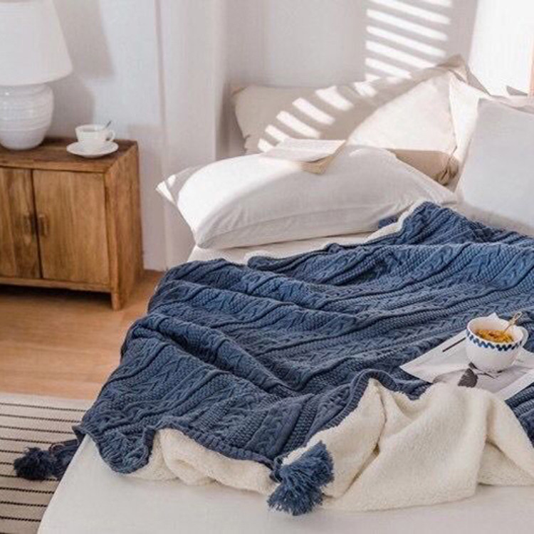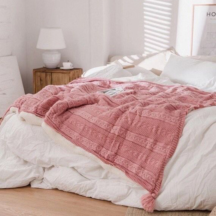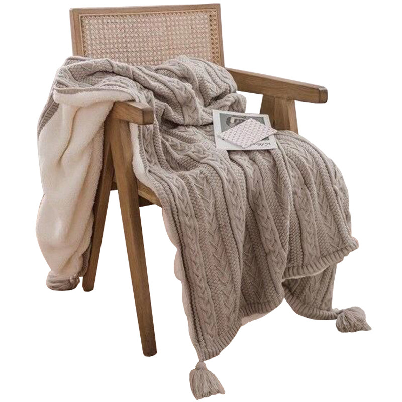 Nordic Sofa Cover Blanket Double Layer Thickened warm flow Su blanket Coral Fleece blanket Knitted Plus Floss Thread Blanket Winter