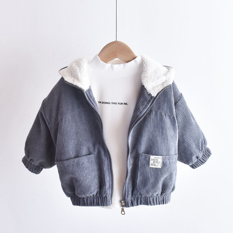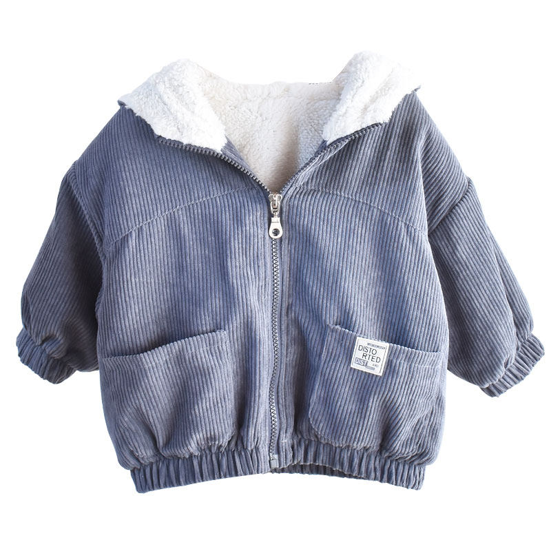 Boys' fleece jacket 2022 winter style Western style Korean version corduroy lamb wool thickened baby top children's cotton coat
