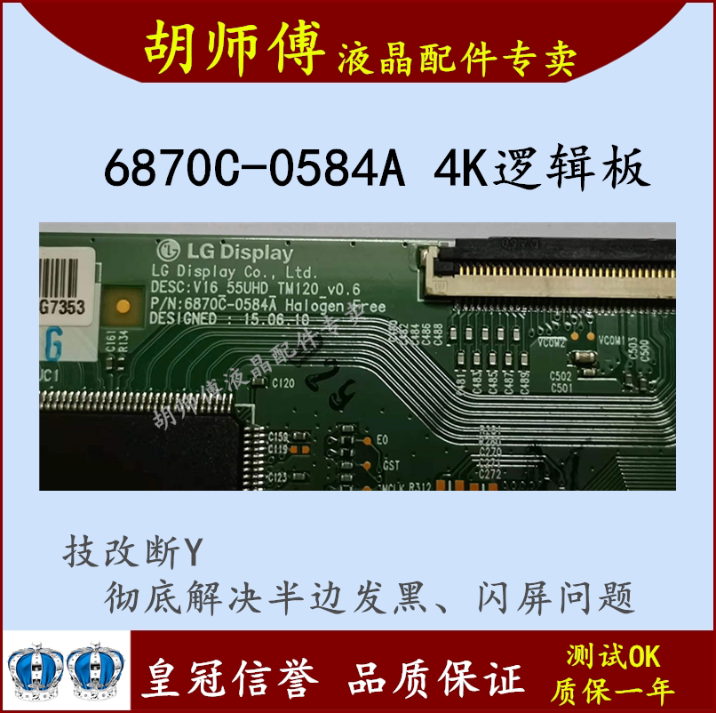 New 4K broken Y technology changes 6870C-0584A 0584B logic board with dark flash screen color not a problem