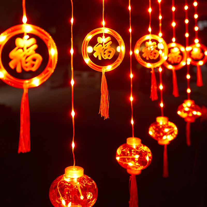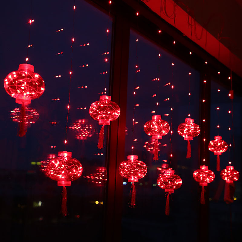 New Year's decorative lights led small colored lights flashing lights for Spring Festival Balcony Hanging Lantern for home Chinese New Year Footypo red lantern string