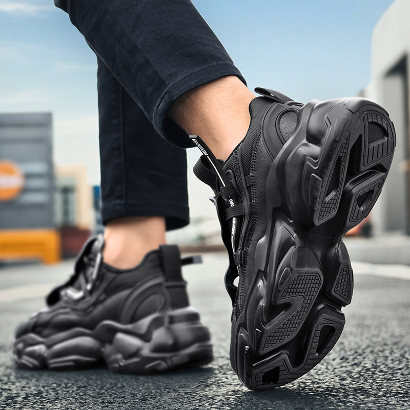 Full black European Station Tide Cards Old Daddy Shoes Men Ins Spring Thick bottom heightening Korean version 100 hitch Casual Sports Tide Shoes