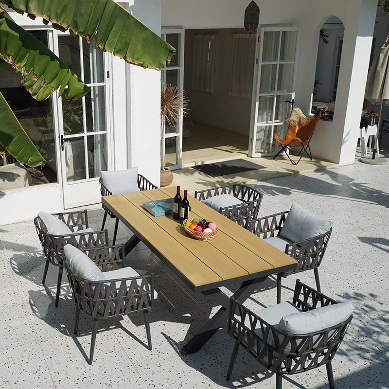 Rattan chair outdoor table and chairs open-air leisure courtyard balcony homestay rattan outdoor anti-corrosion wood simple table and chair combination