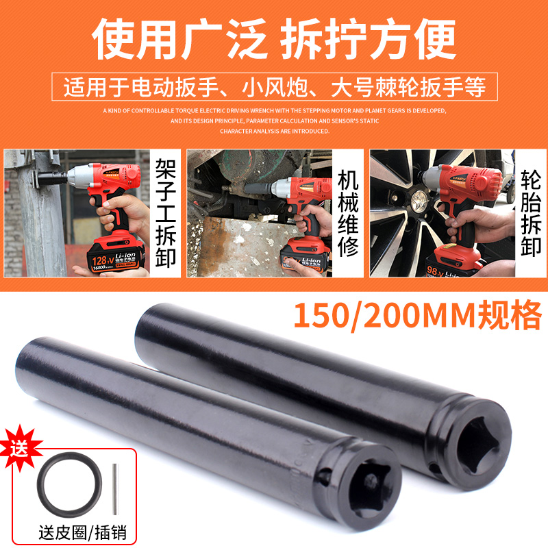 Sleeve electric screwdriver lengthened pneumatic wrench hexagonal sleeve head 1 2 pneumatic wrench 150-200mm electric screw driver sleeve