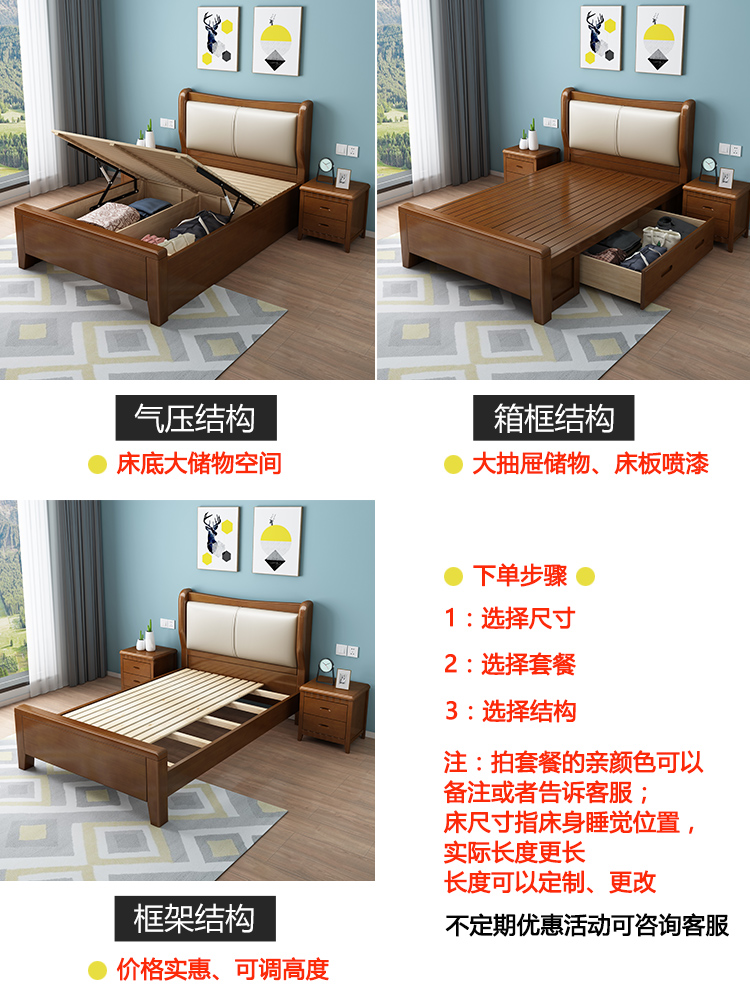 Solid wood bed 1 bedhead cabinet solid wood bed 2 beds 10cm environmental protection palm mattress solid wood bed 10cm latex palm pad solid wood bed 20cm spring mattress