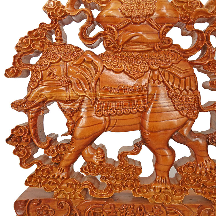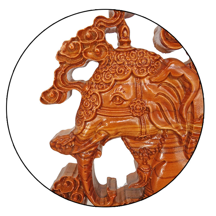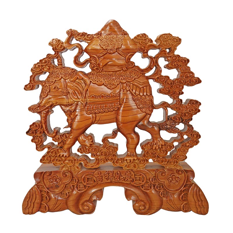 Peach Wood Carving Auspicious of the Elephant At The Mercy of the Elephant