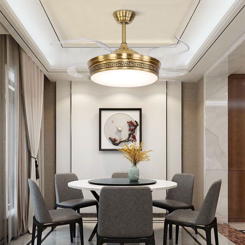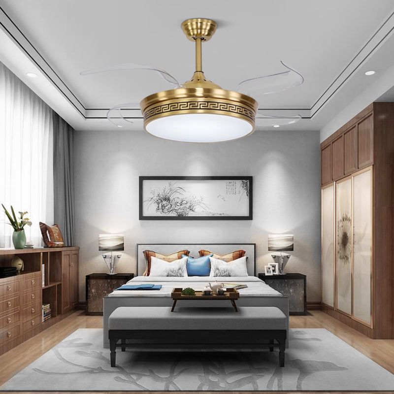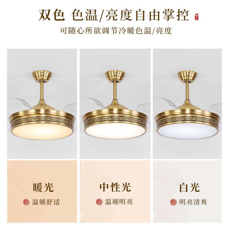 New Chinese style all-copper invisible ceiling fan lamp decorative fan with electric fan lamp living room dining room variable frequency electric fan fan chandelier