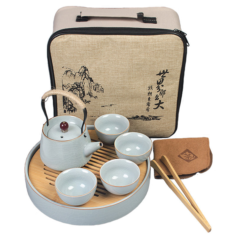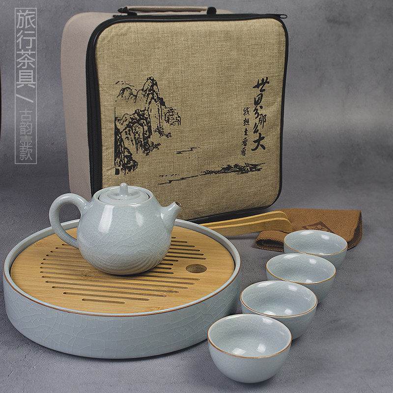 Whole Set Ru Kiln Ceramic Dry Bubble Tea Tray Home Small Suit Custom Day Style Convenient Bag Outdoor Travel Kung Fu Tea Set