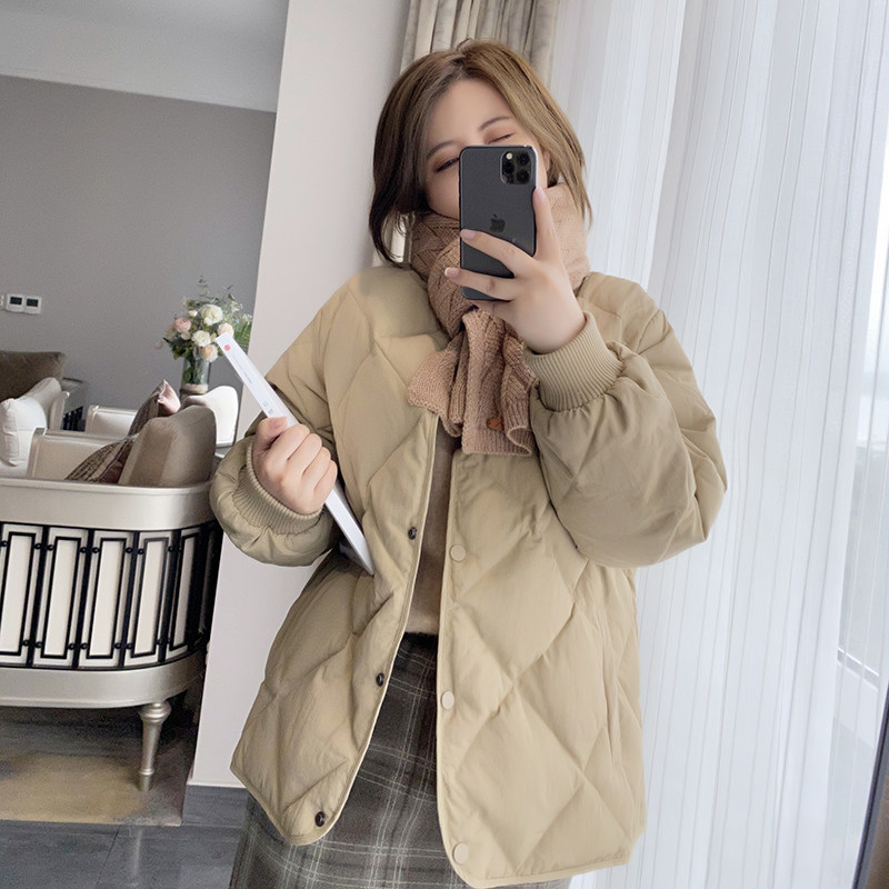 Xuanxuan homemade Lingge Korean version of the white 90% white duck down jacket women's small winter thickened short coat