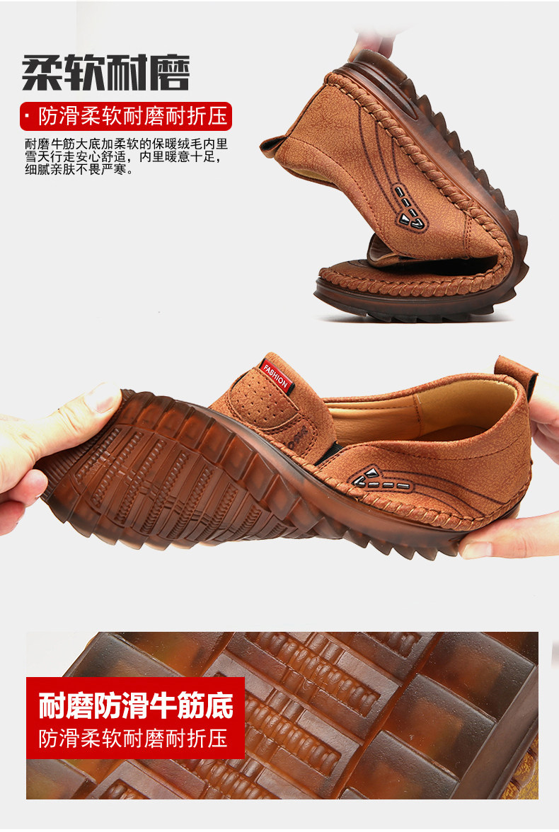 Men's casual leather shoes Men's leather Business Han prints Sloppy Bean Shoes Soft Bottom Non-slip Driving Shoes Add Suede Men's Shoes