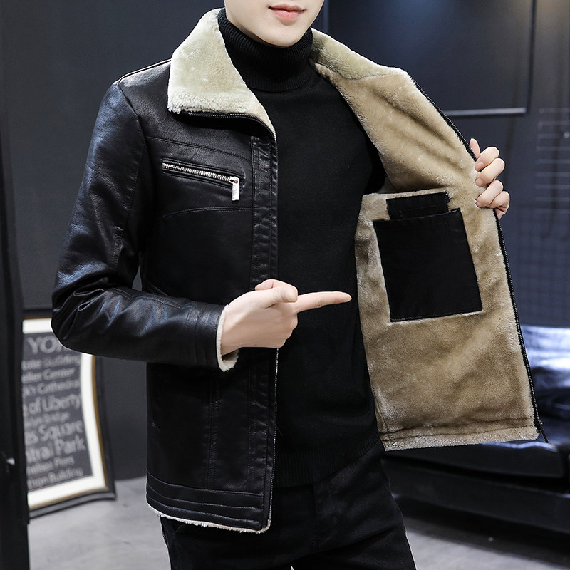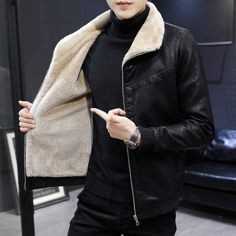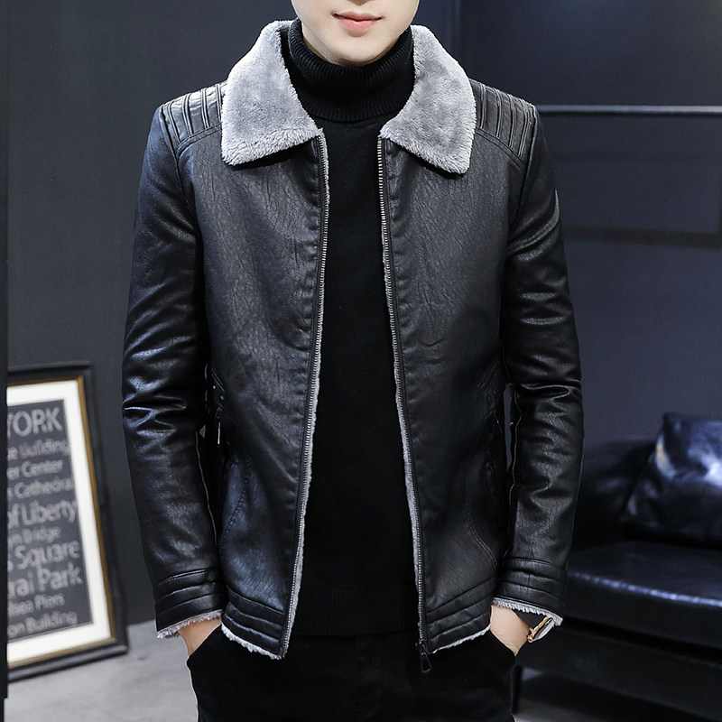 Europe Station 2022 Winter Men Genuine Leather Leather Clothing Plus Suede Thickened Fur Collar Short Leather Jacket Handsome Jacket Handsome