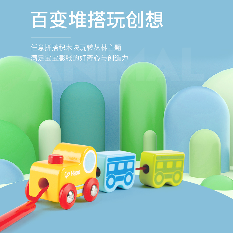 Hape jungle train beaded 1-3 years old puzzle exploration toy children baby boy girl diy building block set