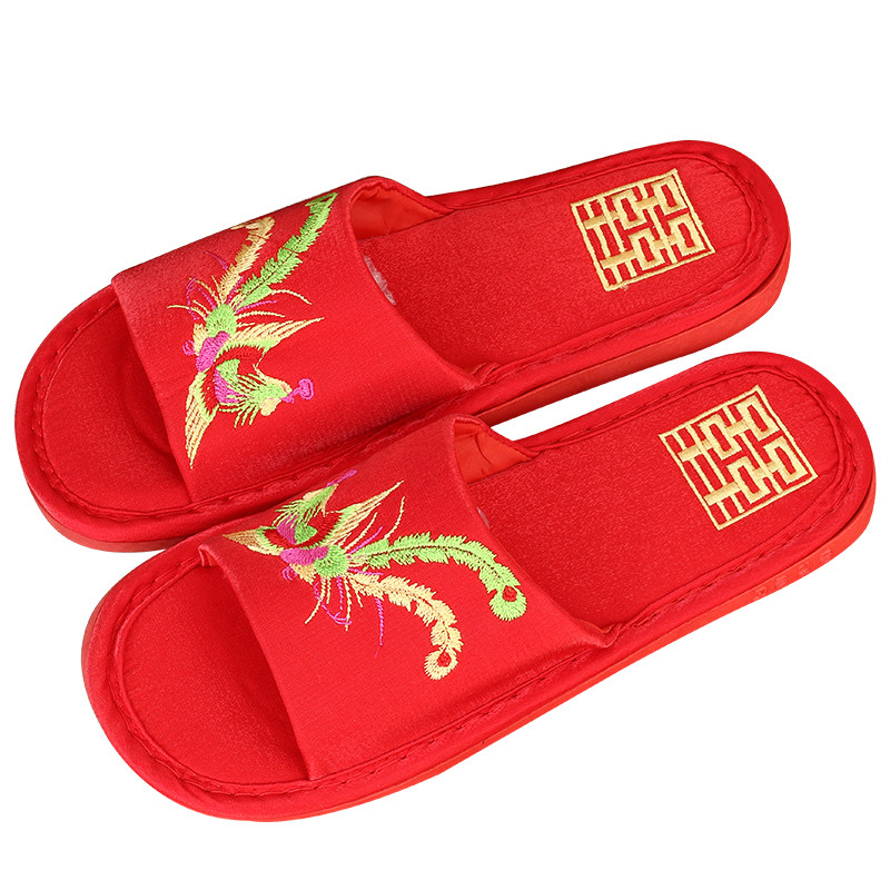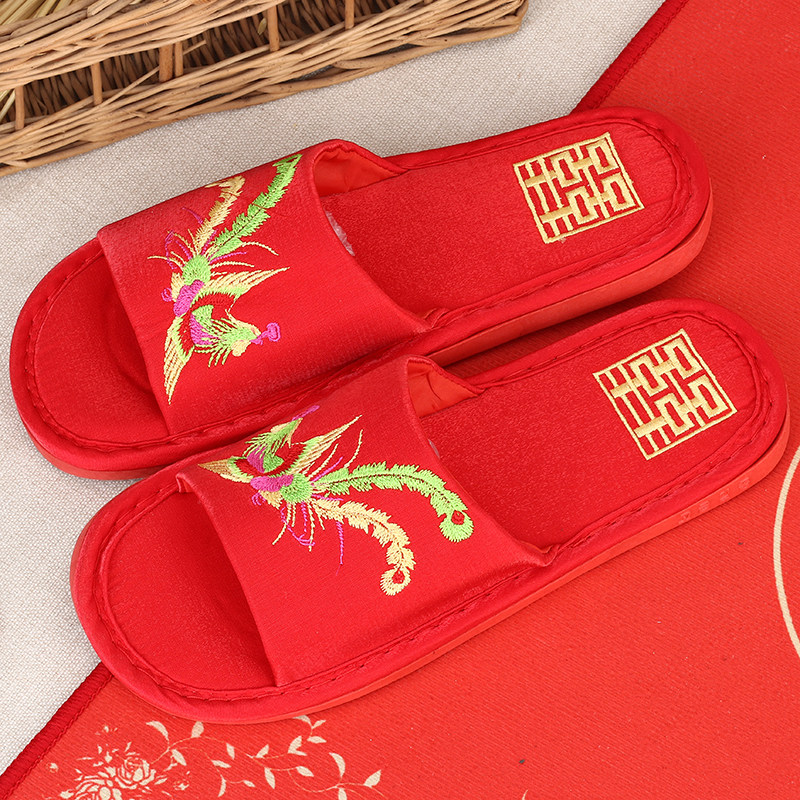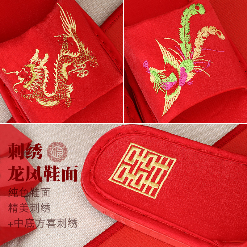 Wedding red festival cotton slippers wedding dowry couple a home slip autumn and winter indoor cotton drag spring and autumn