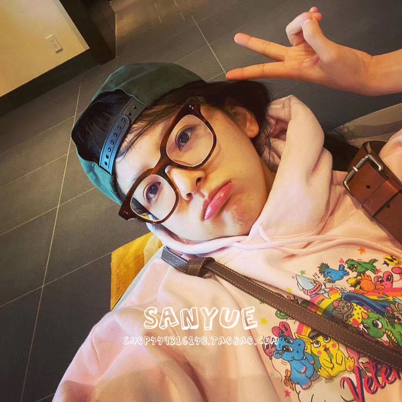 Black frame glasses female element face artifact Korean version large frame round face myopia mirror female eye frame Sydney same glasses frame
