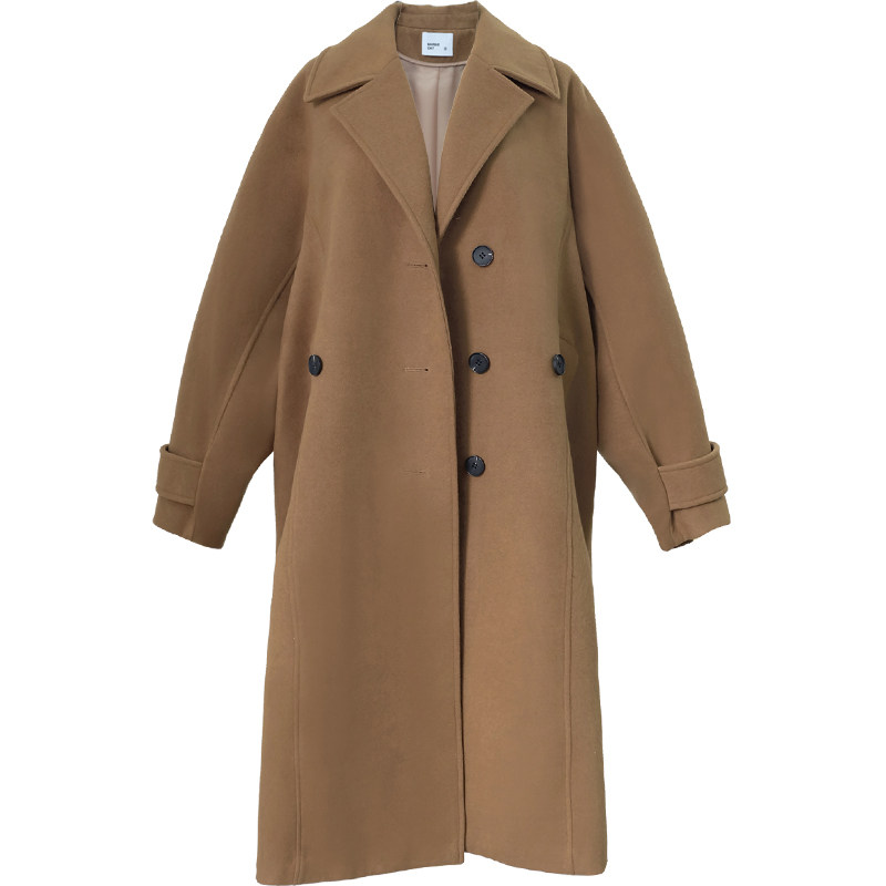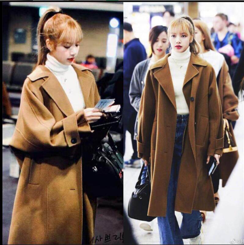 21 - winter new female Lisa star with loose cashmere coat brown medium - long - plate coat
