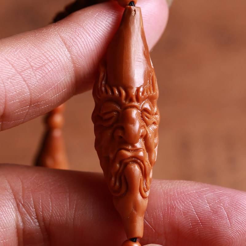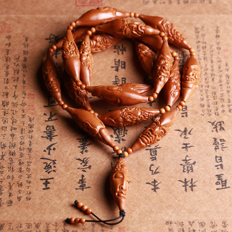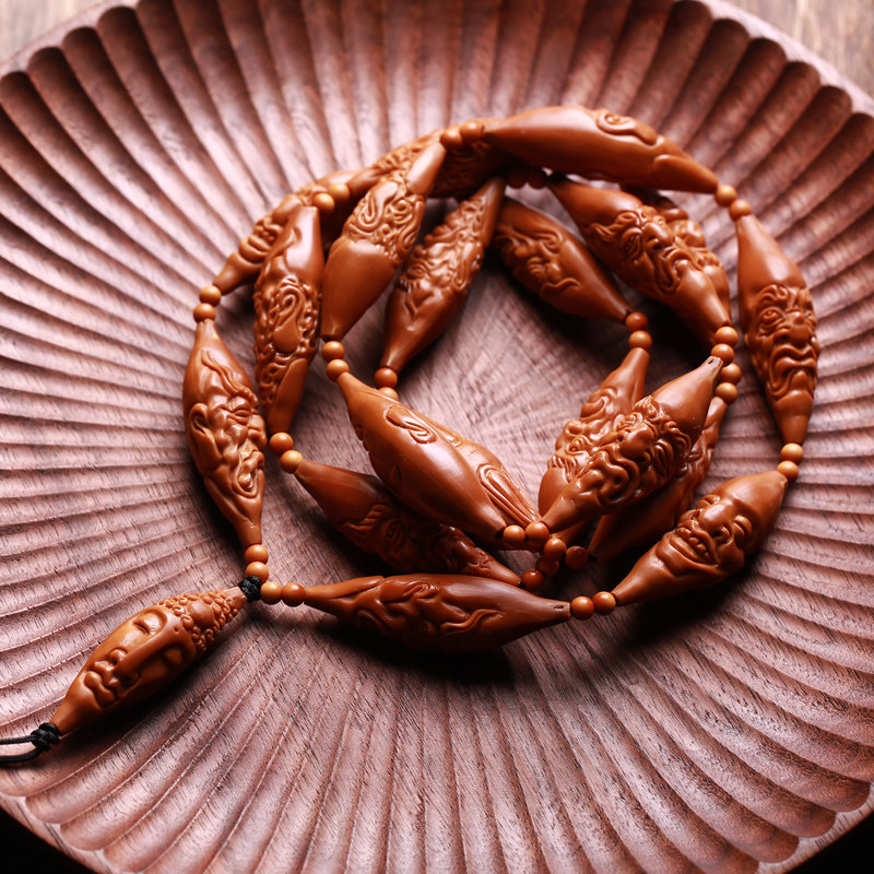 Olive core carving Eighteen Arhat hand string single-sided hand-carved willow leaf slender core multi-circle neck long string sweater chain