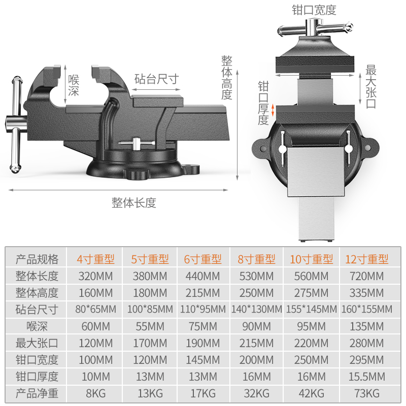 (Real materials are reserved for 20 years) 4-inch heavy-duty movable anvil vise (real materials are reserved for 20 years) 5-inch heavy-duty movable anvil vise (real materials are reserved for 20 years)