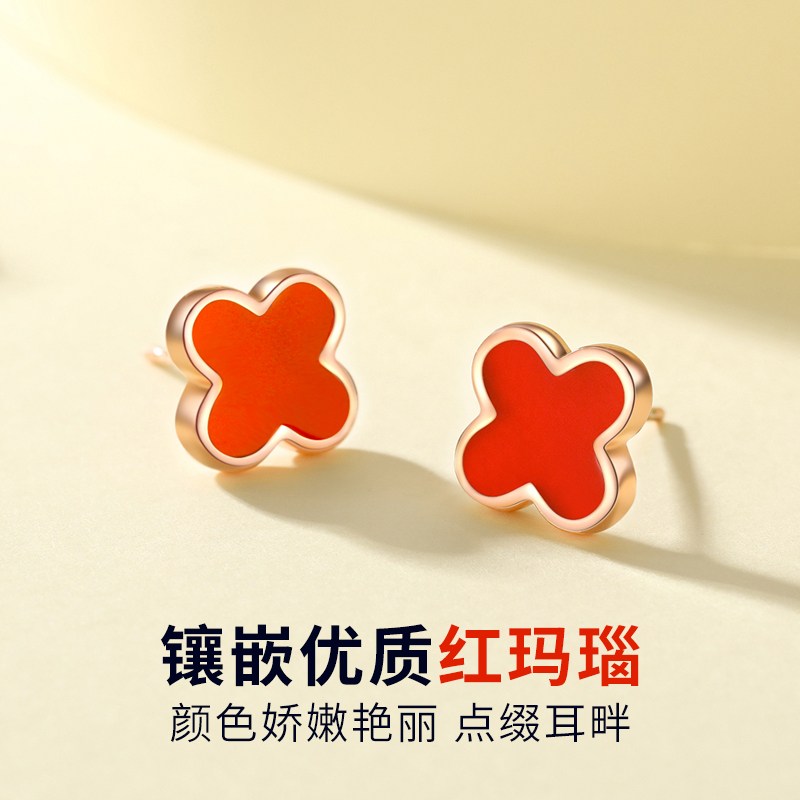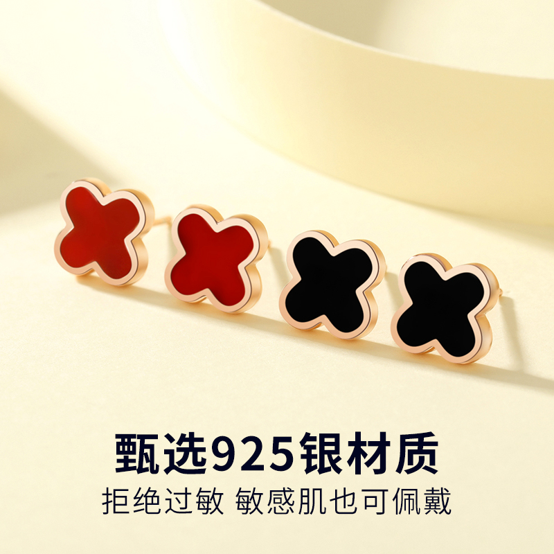 Hot Pin Recommendation★Four Leaves Grass Ear Nail-Black Manau Hot Pin Recommended★Four Leaf ear nail-red Manau four-leaf straw suit (ear stitch necklace) - Black Manau four-leaf straw suit (ear stitch necklace) -