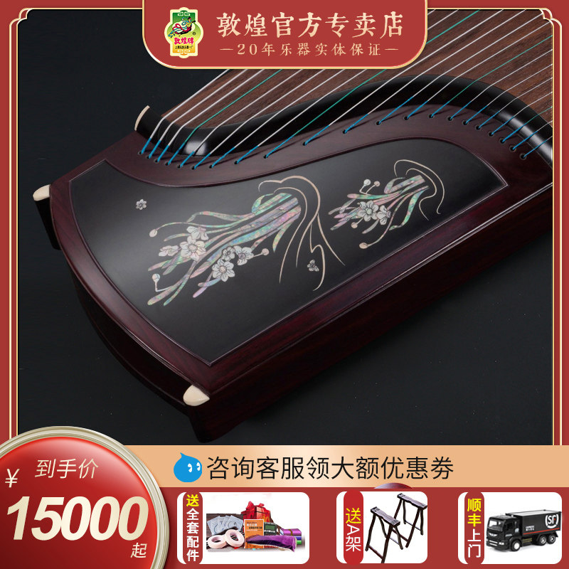 Dunhuang Guzheng 20698LC colours plays Guzheng musical instrument in the broad leaves of the lake
