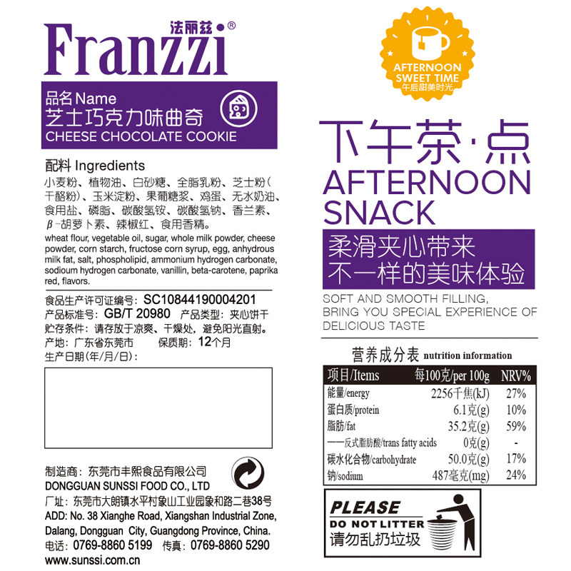 New faritz citric acid milk matcha chocolate cheese sandwich cookie snack 5*95g
