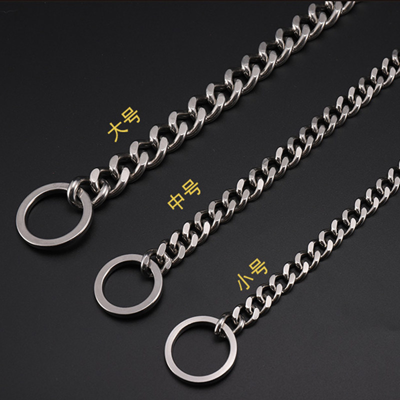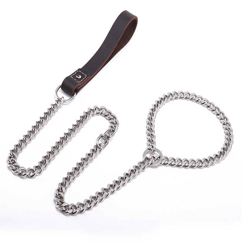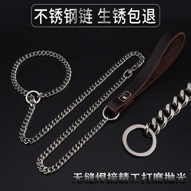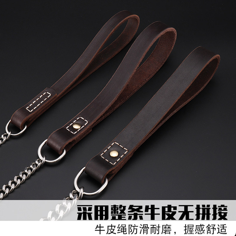 Bull Leather Stainless Steel Integrated P Chain Large Dog Traction Rope Pet Training Dog Explosion Punching Dog Chain Sub collar upscale-Taobao