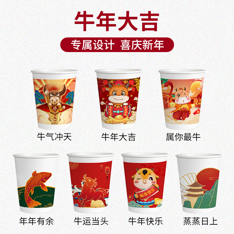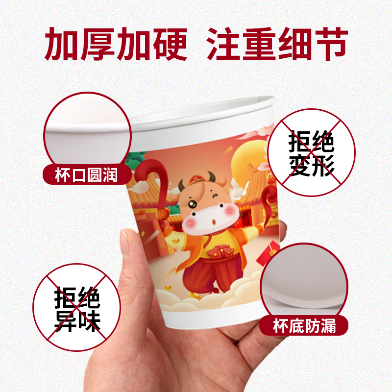 The annual cup of annual cup of one - time cup of one - time cup for the Spring Festival household water cup thicker red paper cup 100