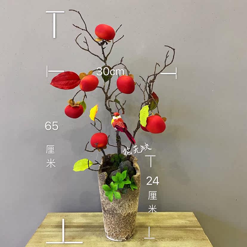 Emulated persimmon fruit branches Fake Flower Arrangements Living-room Furnishing decoration flowers Dry flowers Things Ruyi Tomatoes Bonsai