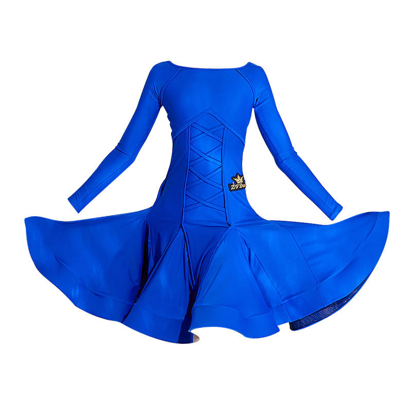 zydance summer new pint girls' performance race suit professional long sleeve fish bone big skirt hem dress