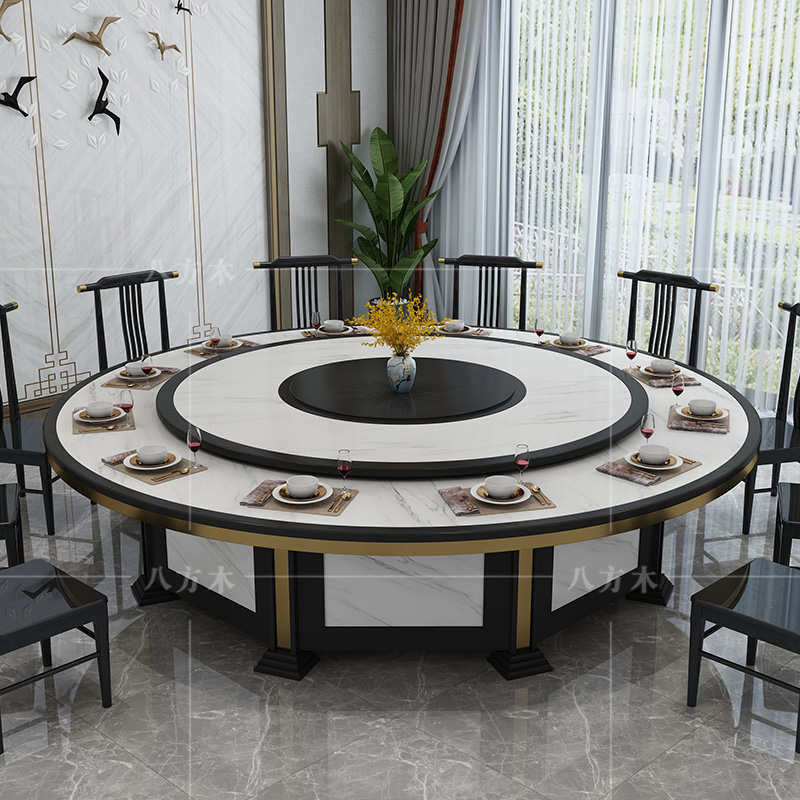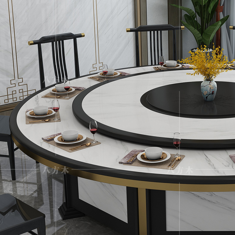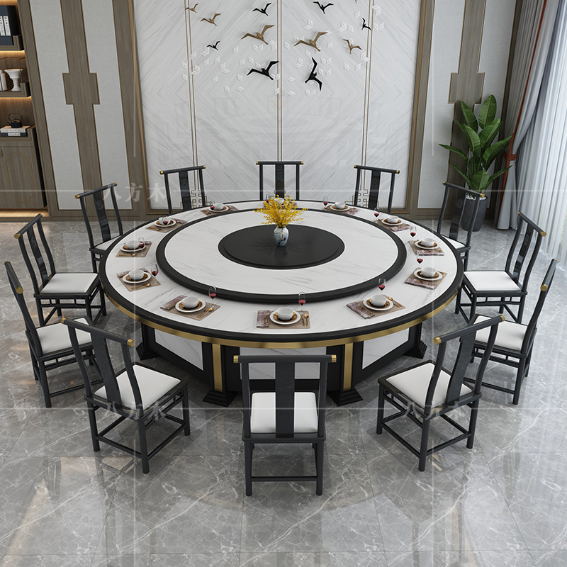 Hotel dining table large round table new Chinese electric dining table solid wood turntable round table restaurant home hot pot table and chair combination