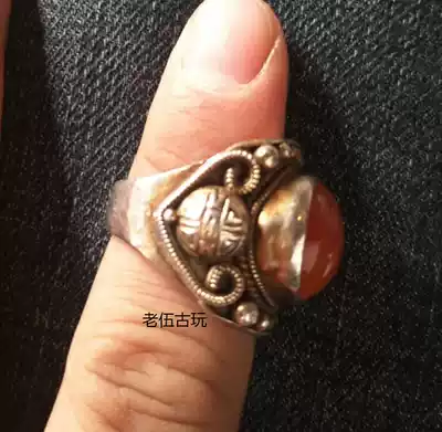 Agate ring Ancient agate ring Red agate ring with longevity agate ring Old agate ring