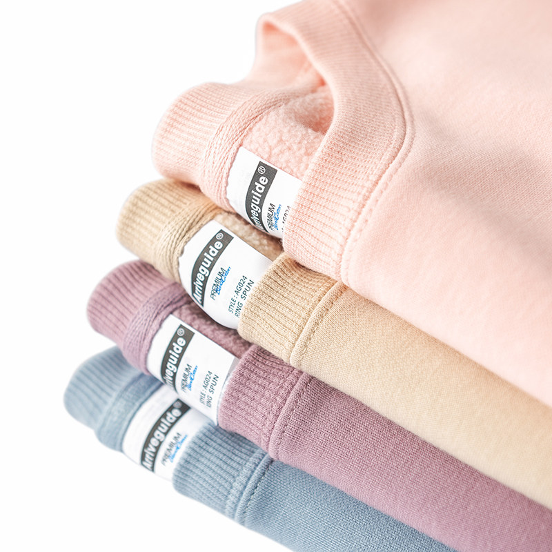 Gentle wind 400g heavy pound autumn winter plus suede round thick cotton T pure color casual loose rocking grain flannel for men and women
