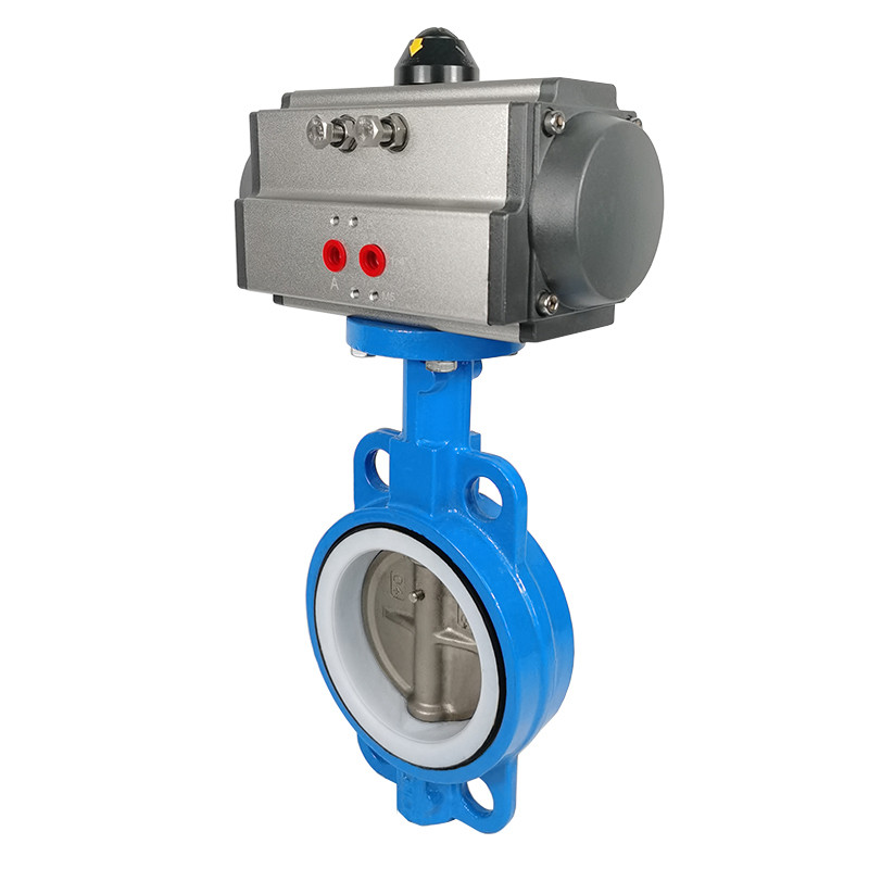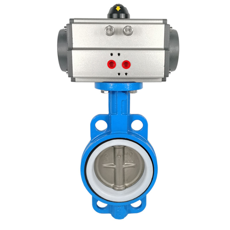 Pneumatic PTFE butterfly valve D671F-16Q corrosion resistant valve DN50 65 80100150250300
