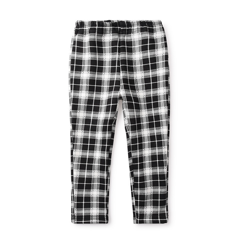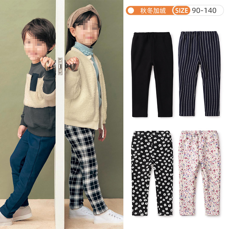 Japanese foreign trade children's pants autumn and winter plus velvet girls warm striped casual trousers thickened black plaid three