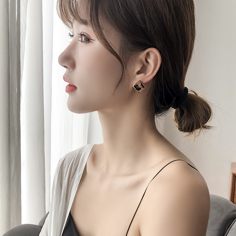 Titanium steel simple square BAO WEN ear pin female earrings temperament Korean tide net red personality niche autumn and winter new earrings