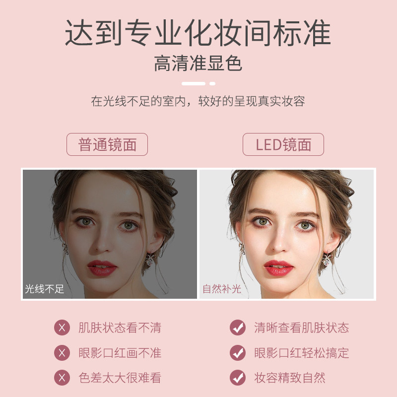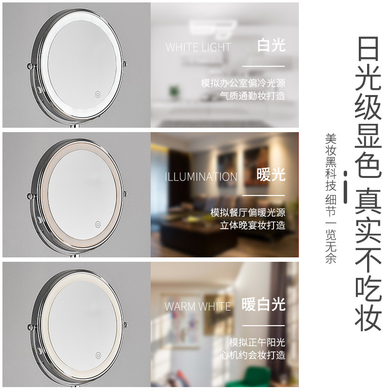 Bathroom makeup mirror hole-free rotatable led light net red wall-mounted folding with light charging dormitory bathroom mirror