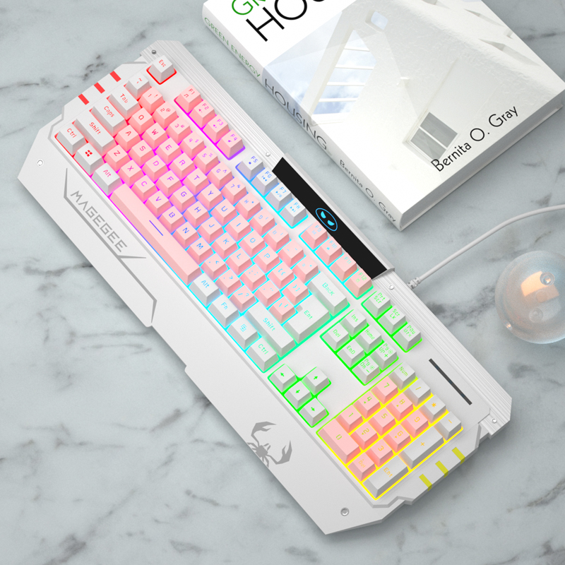 Magegee gaming game mechanical feel keyboard and mouse set White powder cherry blossom contrast color girl cute cf eat chicken lol luminous keyboard and mouse three-piece set Notebook computer home wired external device