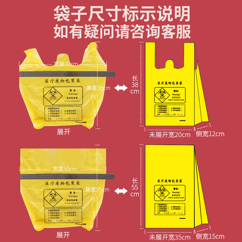 Medical waste garbage bag medical yellow clinic waste special bag large thickened portable flat mouth recycling bag