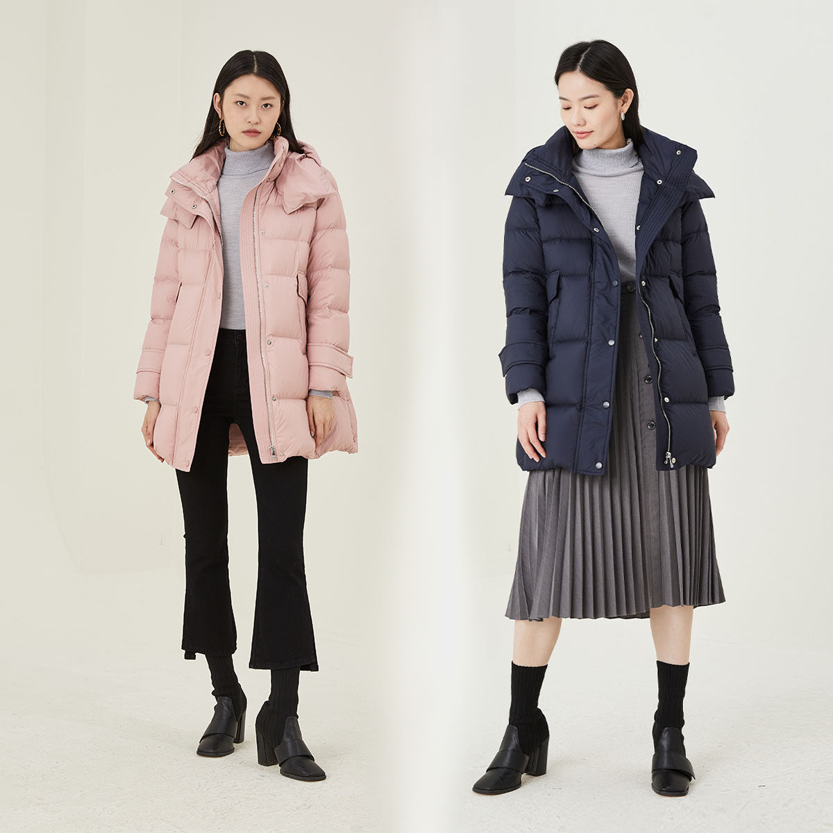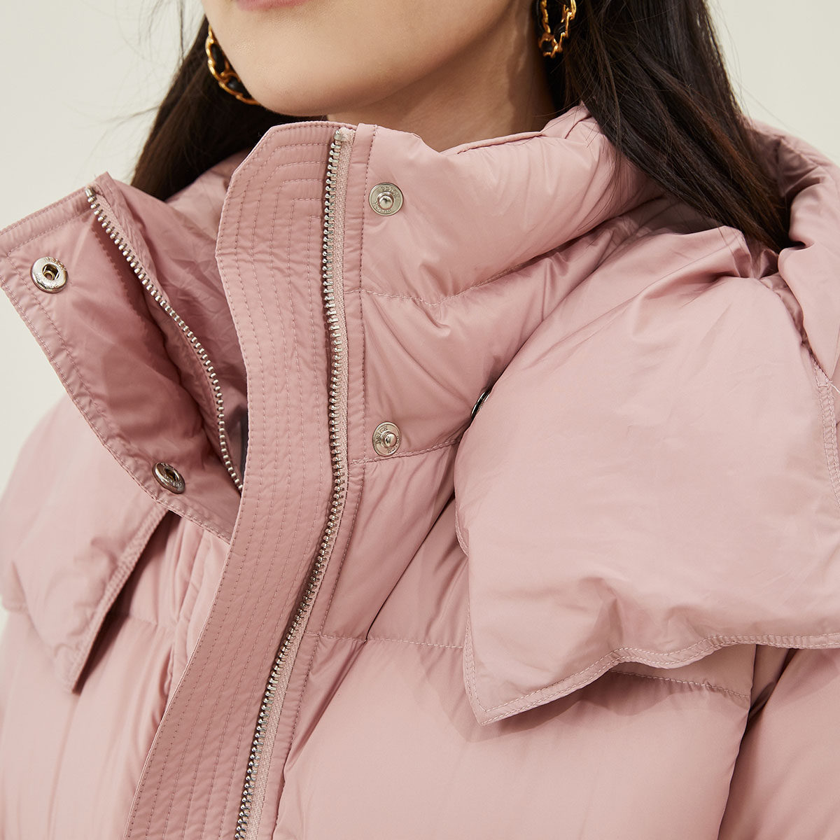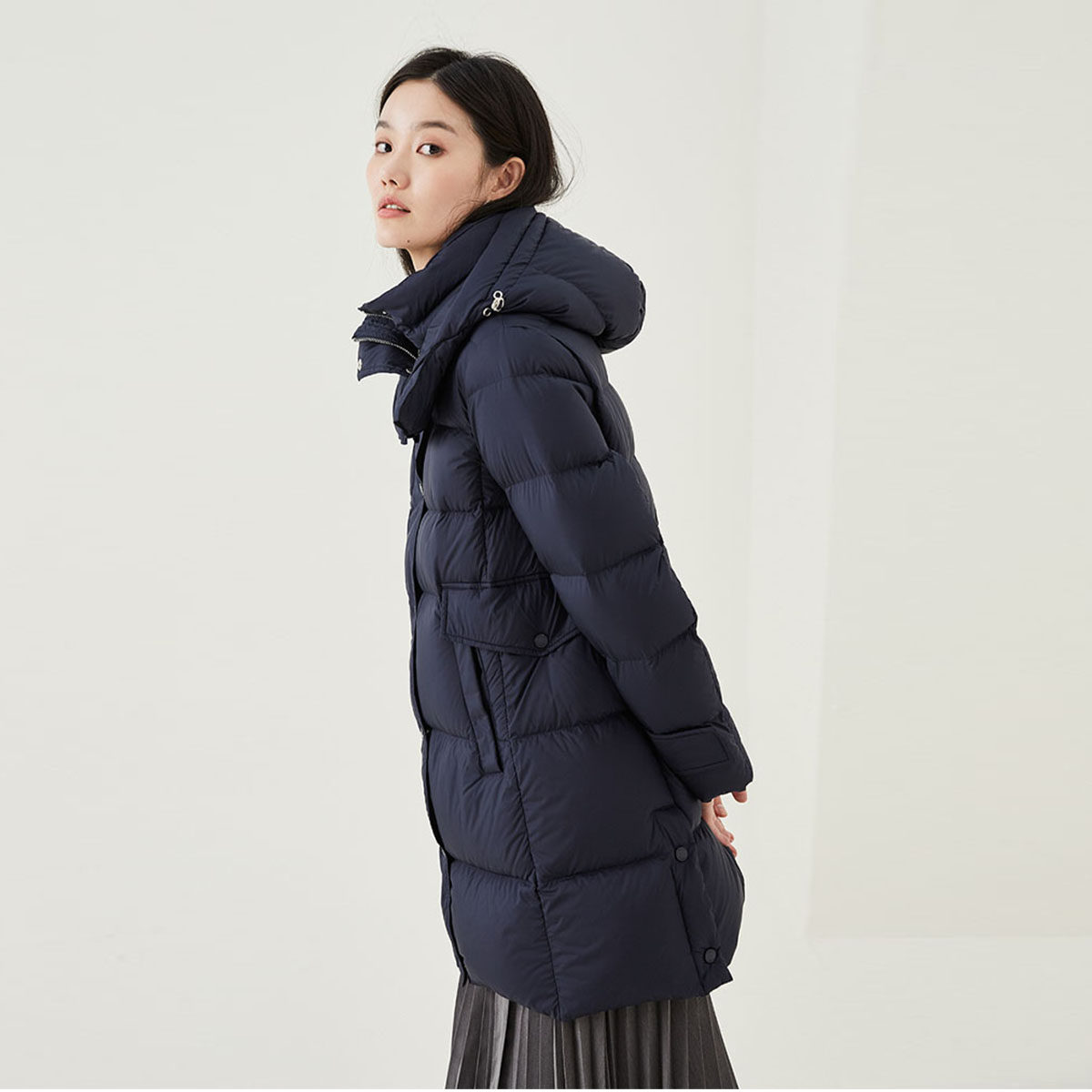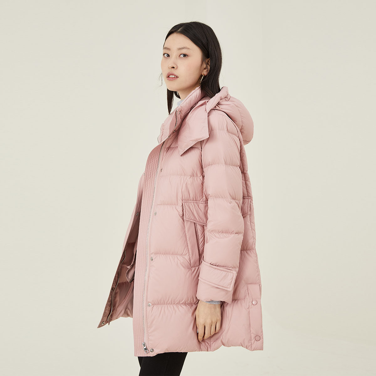 PRICH down jacket hooded pocket design sense mid-length version simple casual padded jacket down jacket top women