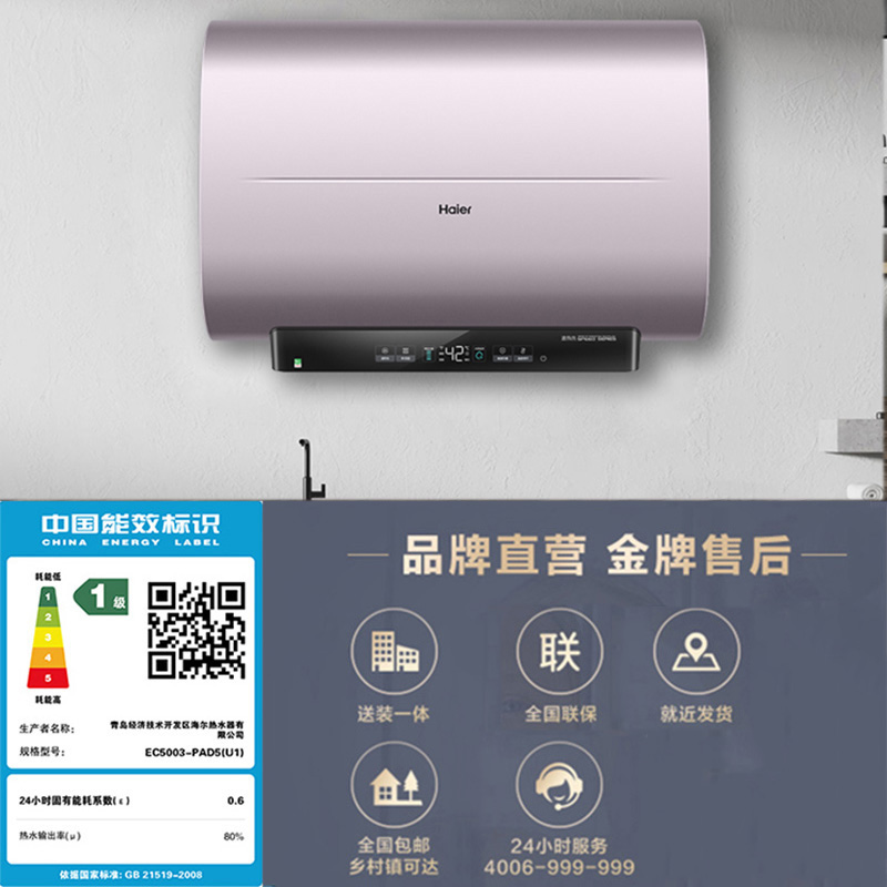 Haier Haier EC5003-PAD5(U1) Water heater flat barrel speed heat water storage 50L new products are ultra thin