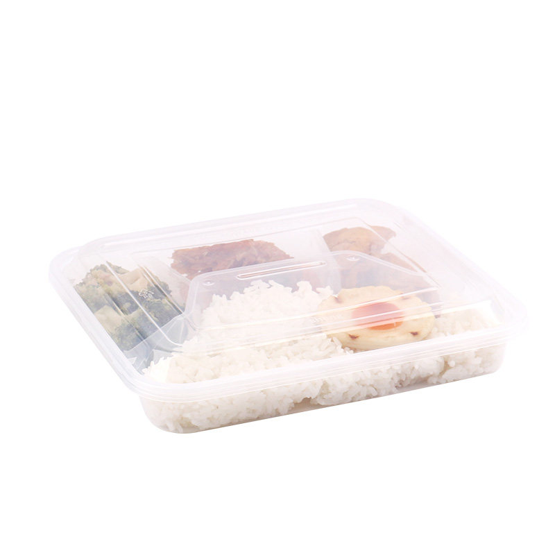 Disposable Dining Box Trig 4-G Rectangular With Lid Lunch Box Fast Food Box Transparent Plastic Sub-Send Packing Box