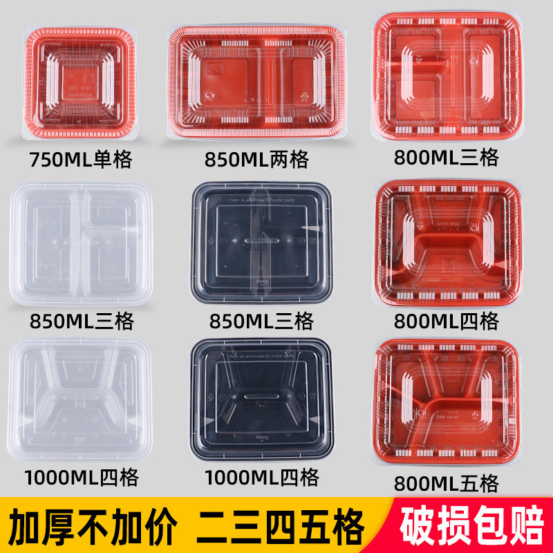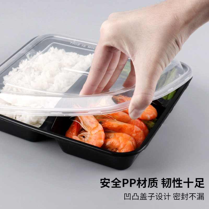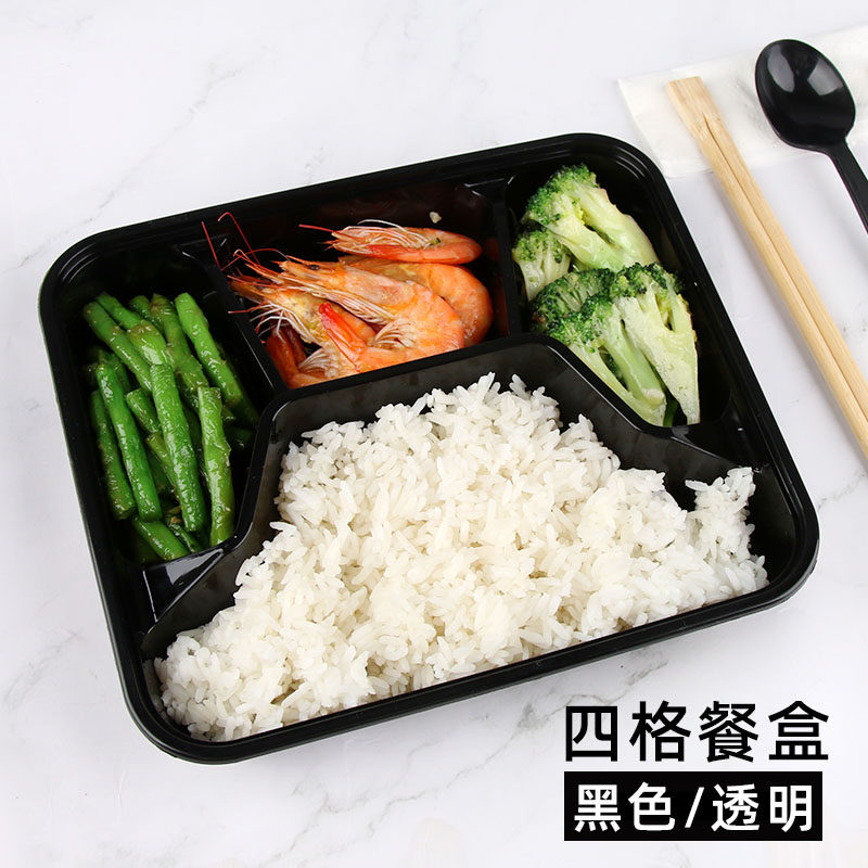 Transparent three-grid dining box (150 sets) transparent four-grid dining box (150 cover) black three-picnic box (150 cover) black quad box (150 cover) red black two-grid 100 cover (with lid)