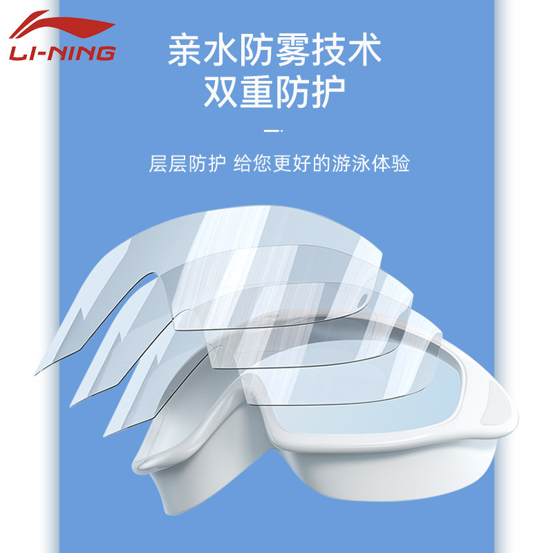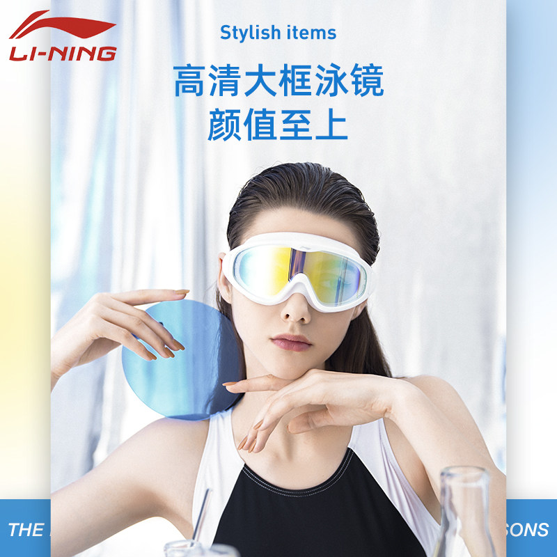 Li Ning swimming goggles large frame waterproof and anti-fog high-definition children's myopia diving glasses men's and women's professional swimming integrated equipment