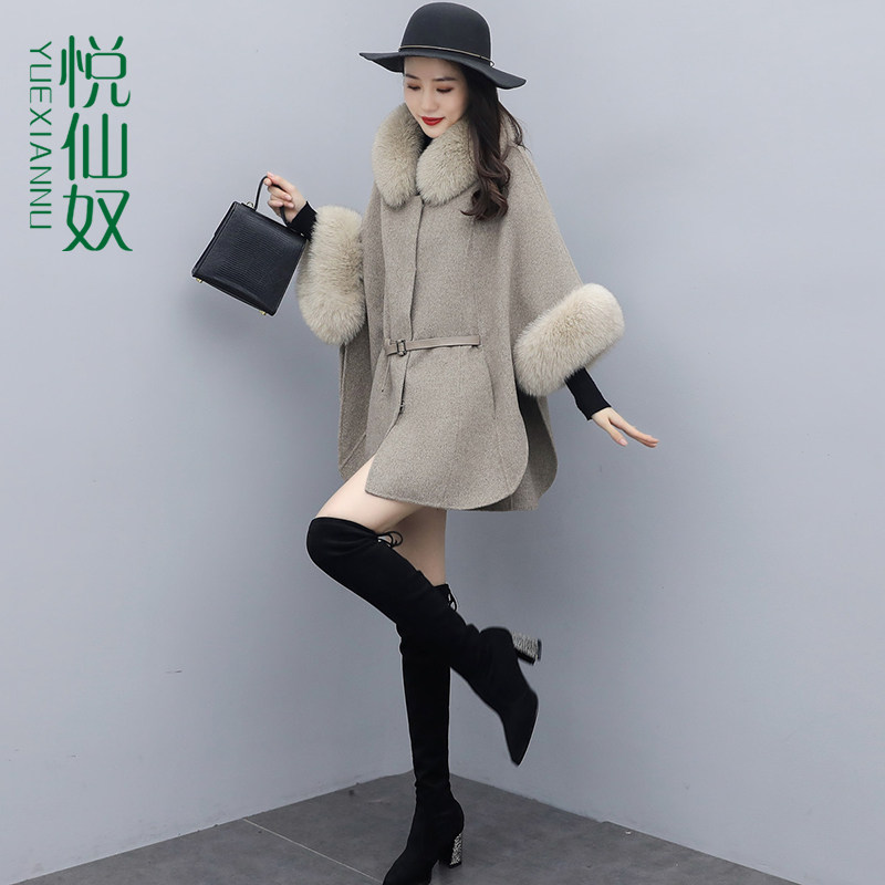 Tweed coat women's midi 2022 new Korean version fashion short style Mrs. Kuo Mrs. fur collar cape cape coat
